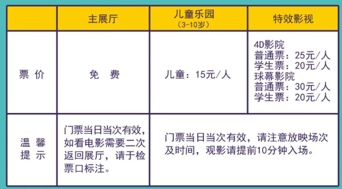 湖南省科技馆常设展厅(A馆)门票免费;童趣馆(B馆)成人、儿童一律15元/人;4D影院成人票25元、学生票20元/人;球幕影院成人票30元、学生票20元/人。