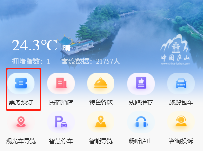 2.进入首页,点击“票务预定”