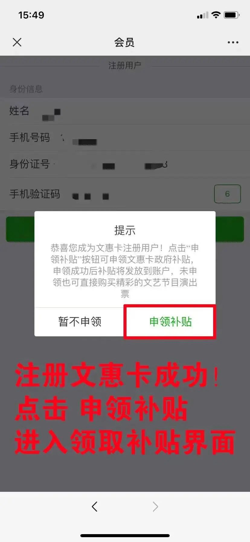 第三步:补贴申领不成功或选择“不申领”的仍为文惠卡普通注册用户。
