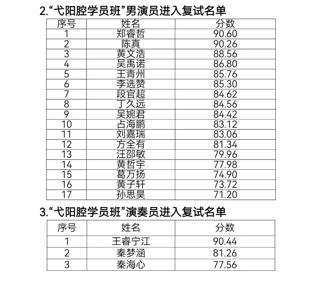 弋阳县2022年招收“弋阳腔学员班学员初试进入复试人员名单公告