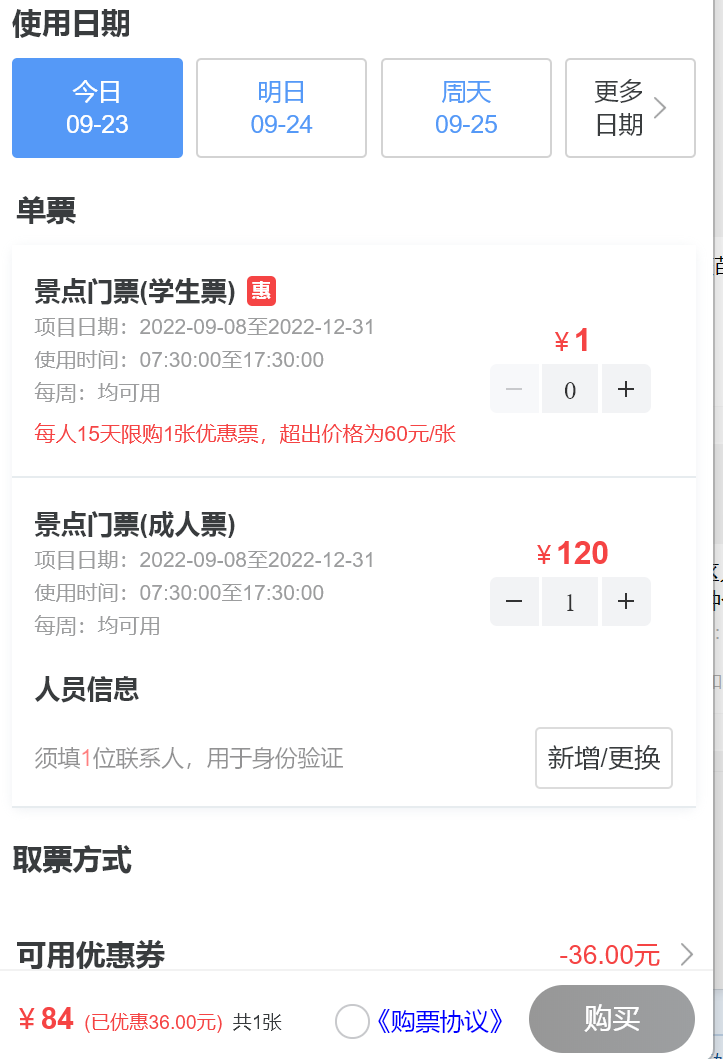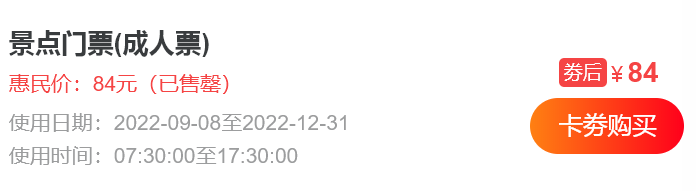 成人虽然没有1元特惠票,但可花84元购买原价120元的门票。