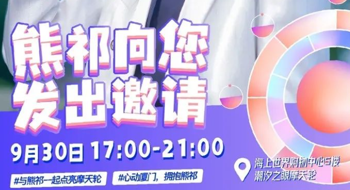9月30日来厦门潮汐之眼摩天轮,与熊祁近距离接触,更有机会与熊祁一同乘坐摩天轮,开启浪漫之旅。
