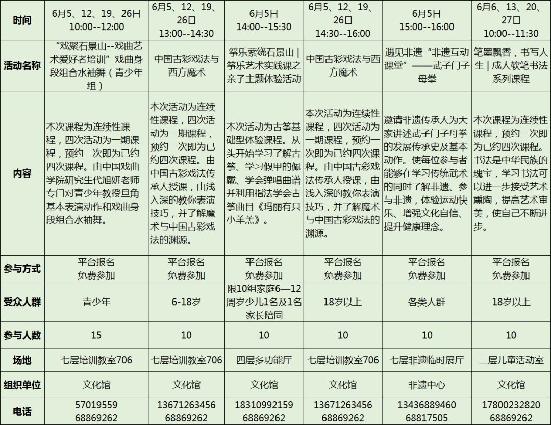 预约平台:“石景山文E”手机APP,“石景山文旅”微信公众号,“石景山文化E站”网站