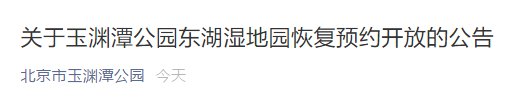 玉渊潭公园东湖湿地园恢复预约开放的公告