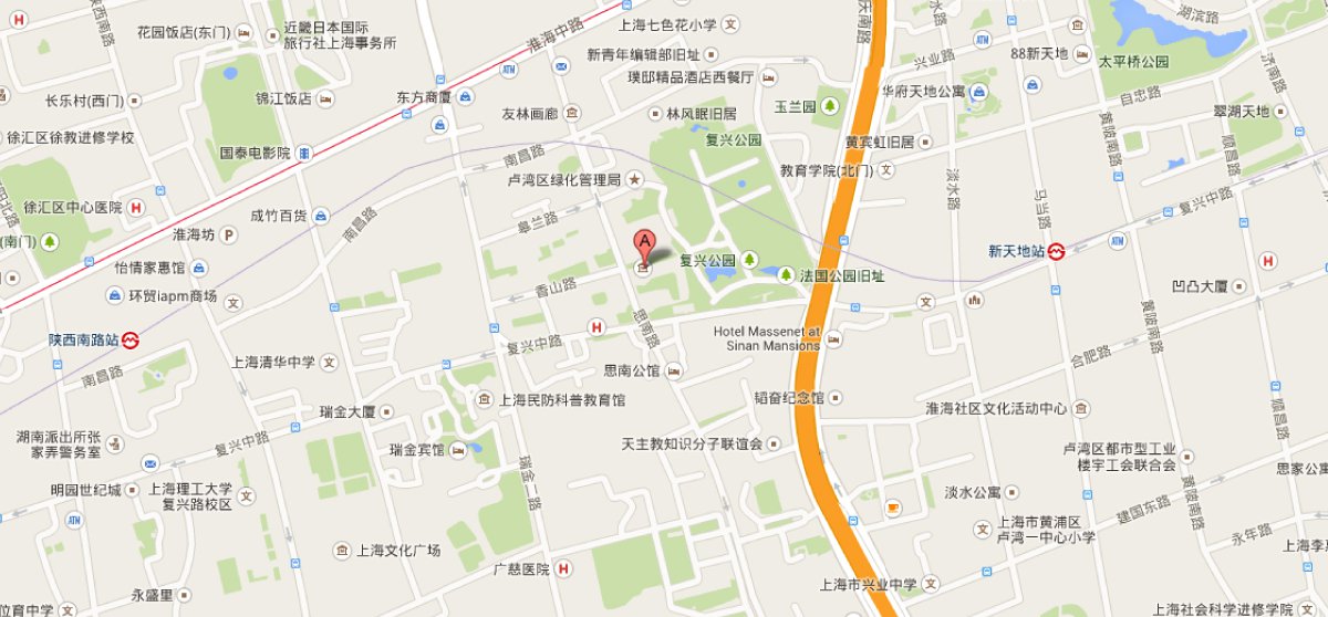 地铁1号线或10号线“陕西南路”站下,步行约10分钟后到达。