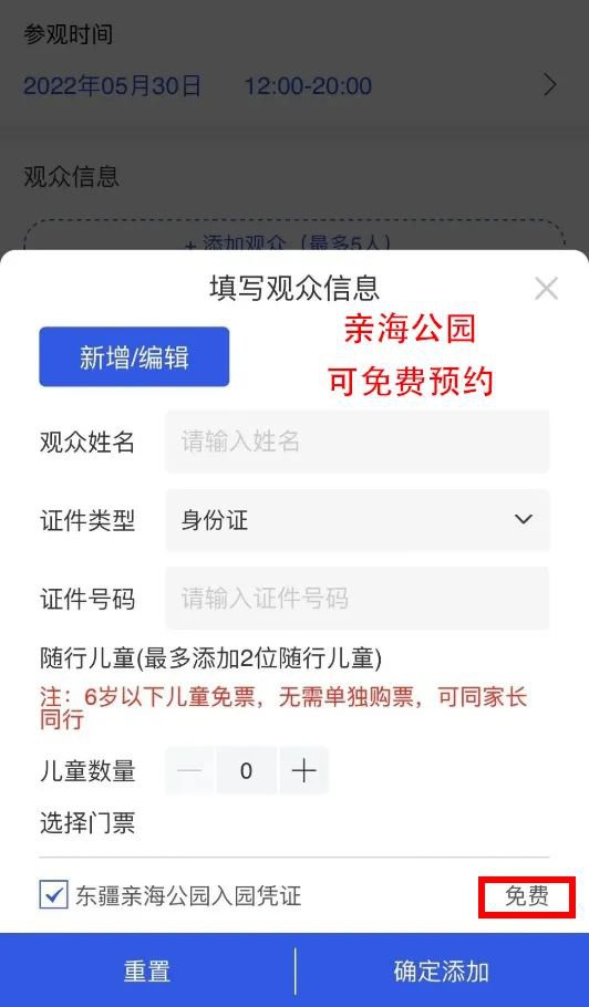 5.填写预约观众信息点击(六岁以下儿童无需预约,可随家长预约凭证同行)