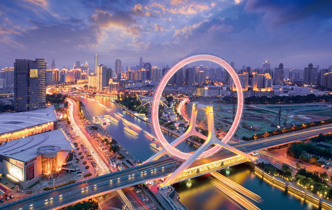 上仰天子之渡灵气,下拥九河下梢的风光,其奇思妙想、巧夺天工的设计是世界摩天轮建筑方面的一大突破。
