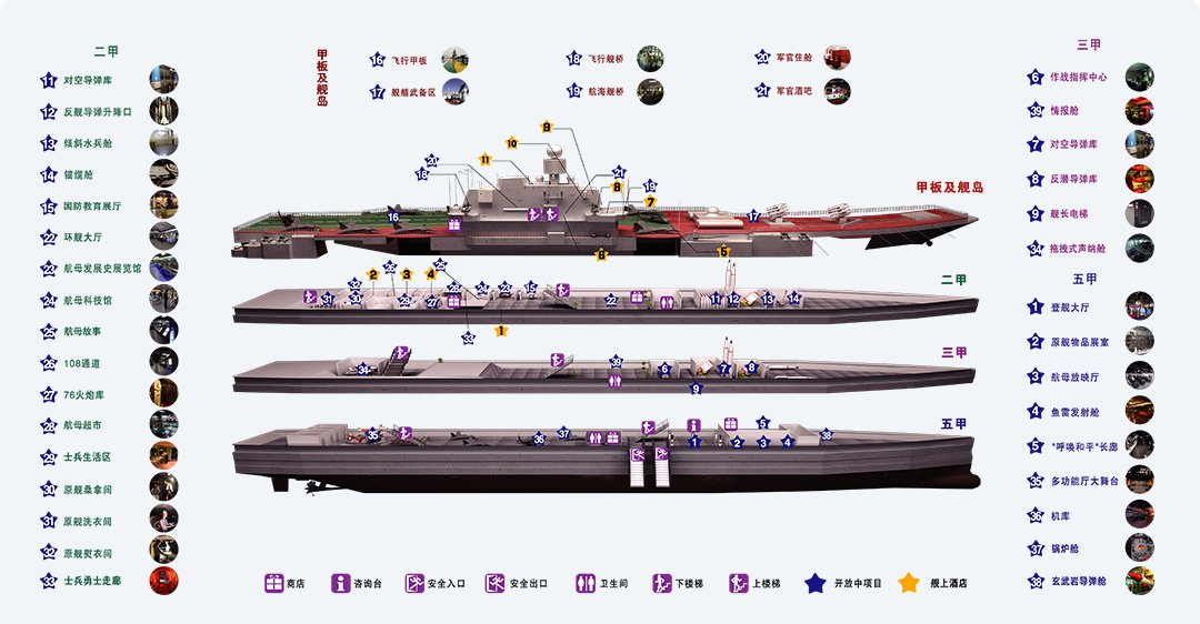 2.为最大程度保留原舰构造,航母、驱逐舰内部未设置无障碍通道,残疾人游客请自行解决上下楼梯事宜。由此带来的不便,敬请谅解。