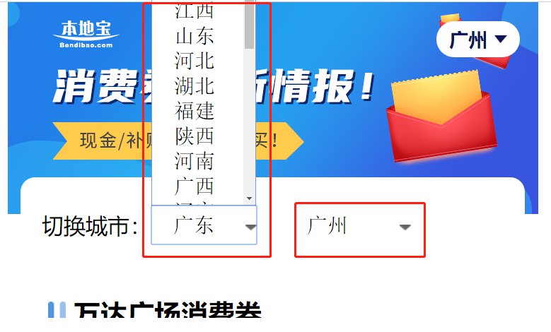 进入消费券查询入口,选择所在城市,即可查看所在城市的消费券相关信息。