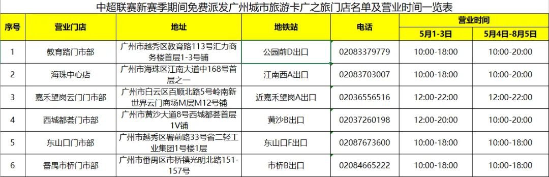 领卡方式:外地球迷抵穗48小时内,凭本人身份证、中超足球广州赛区电子门票,即可在广之旅指定门店免费领取该卡。