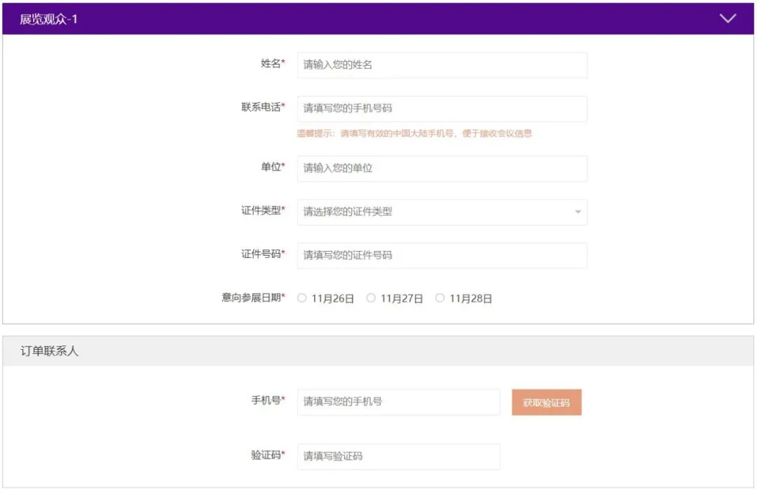观众可登陆世界5G大会官网(http://www.w5gc.com)首页点击“观展注册”,依照预登记系统页面提示进行注册,注册成功后您的观展二维码将在24小时内以短信形式发送至订单联系人手机,该二维码将作为参会的唯一凭证,请您妥善保存。