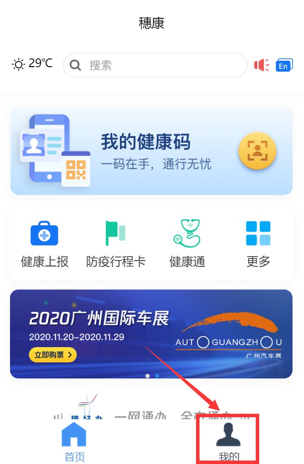 1、打开“穗康”小程序,点击右下角“我的”。
