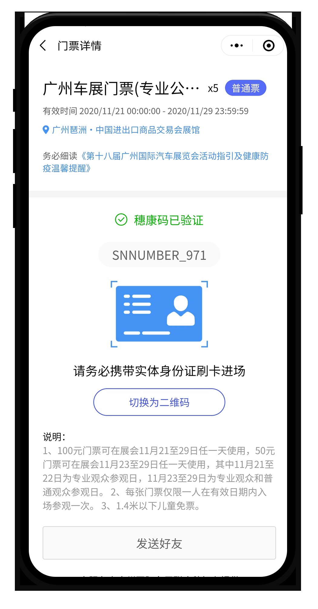 本人凭真实、有效个人身份证明信息,通过“穗康”小程序参与预约登记购票,填写真实姓名、证件信息及联系方式完成实名认证,预约登记购票填写的信息需与本人所持身份证明一致,确保“人证合一”,冒用他人身份证明预约登记购票的,一经发现,将依照相关管理规定处理。