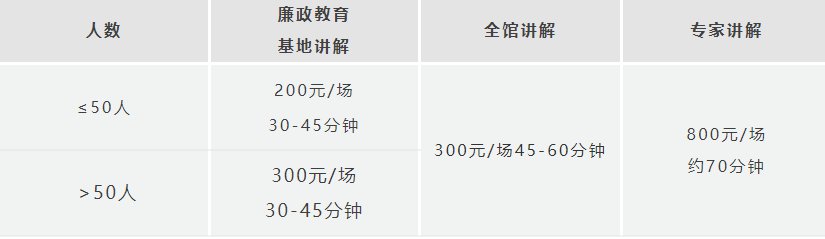 团体:博物馆对团体实行有偿讲解服务,有偿讲解服务需提前预约,收费标准如下——