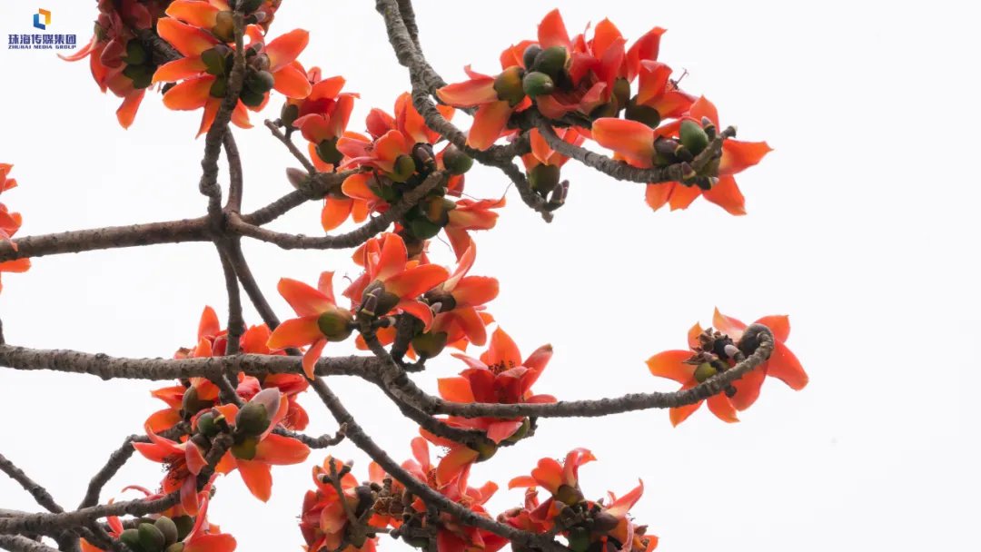 街角,排排木棉已入花期,绽放得绚烂。火红的花瓣象征“开门红”。