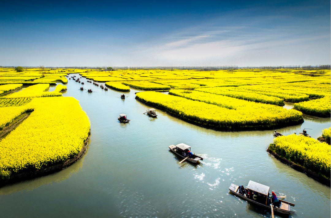 该景区被誉为全球重要农业文化遗产,是全球“四大花海”之一。垛田,集中分布在江苏省兴化市,所以兴化也被称作为”千岛之国“.其中主要分布在兴化市的垛田街道,千垛镇,沙沟镇。“河有万湾多碧水,田无一垛不黄花”恰逢盛花期的千垛景区,万亩垛田,水网纵横,菜花飘香,广邀天下宾客赴一场春日浪漫之约。