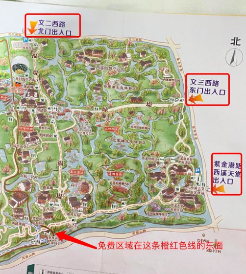 西溪湿地有免费供市民、游客参观游览的区域,免费区域有3个出入口: