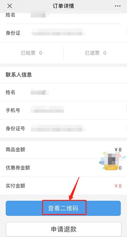 ⑤进入如下页面后,拉倒页面最下方,点击“查看二维码”在景区门口刷码即可入园游玩啦!