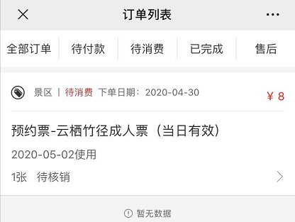 ④出现如下画面后,就可以看到自己预约景区的信息了,然后点他!
