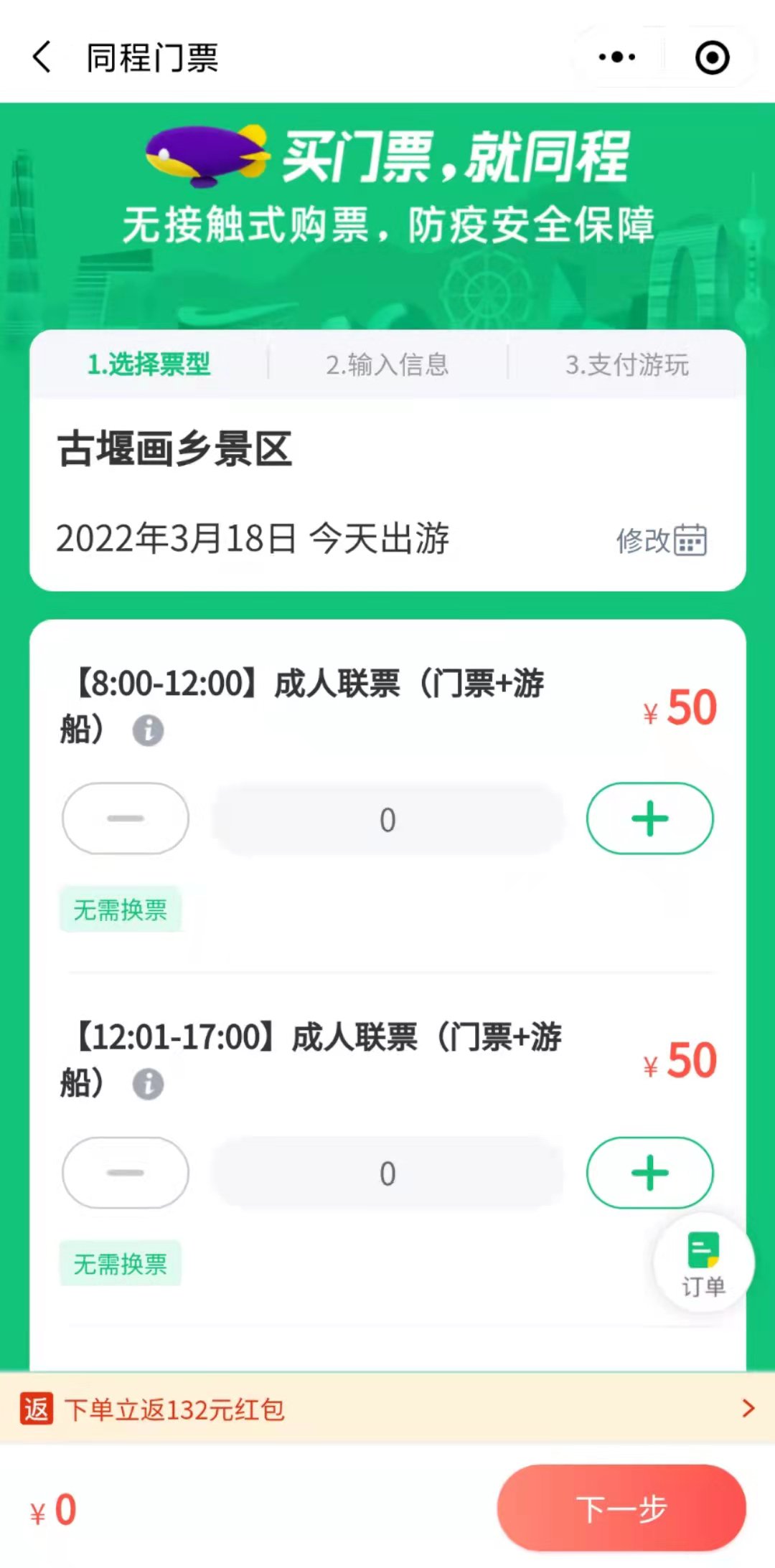 4、选择出行日期、门票类型;