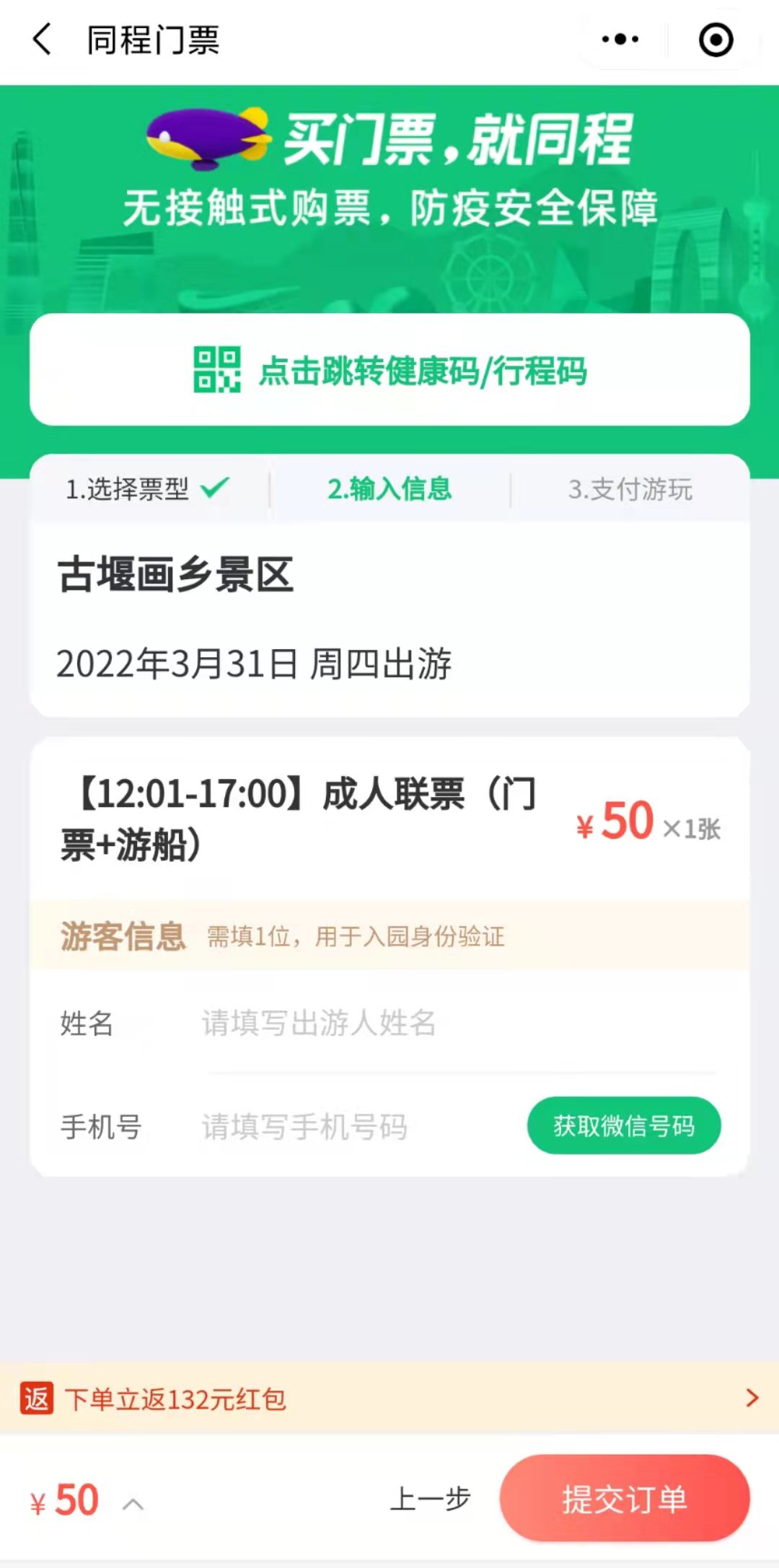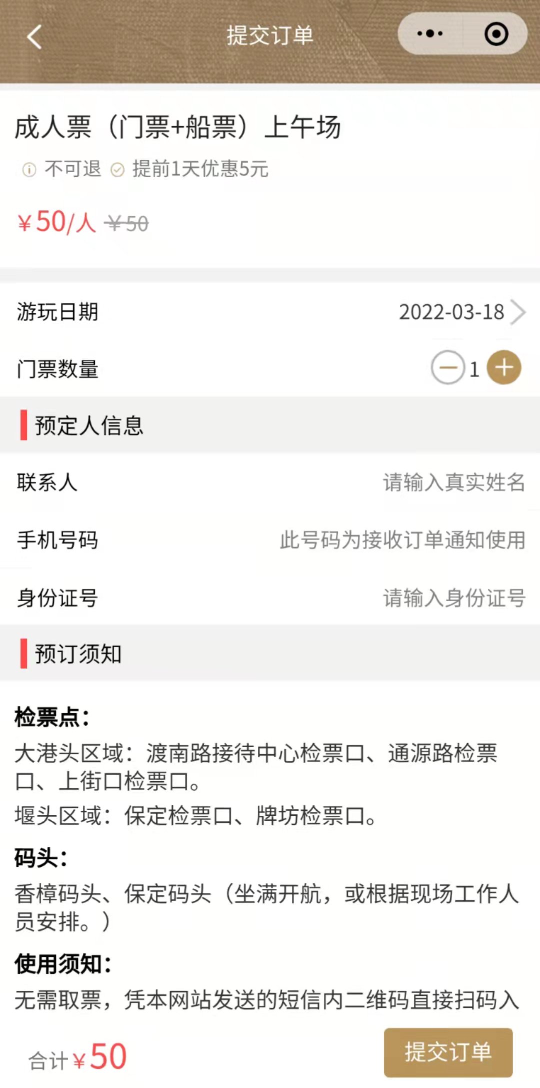 4、选择游玩日期,填写个人信息。