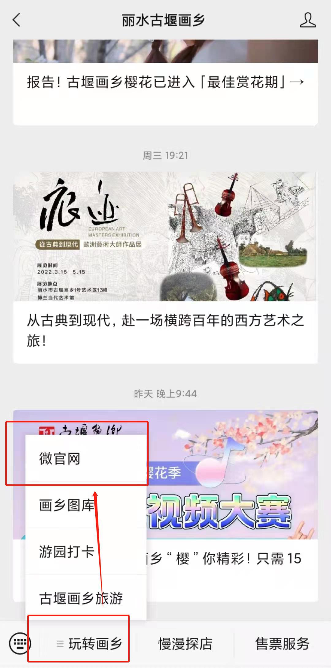 2、点击“玩转画乡”中的“微官网”;