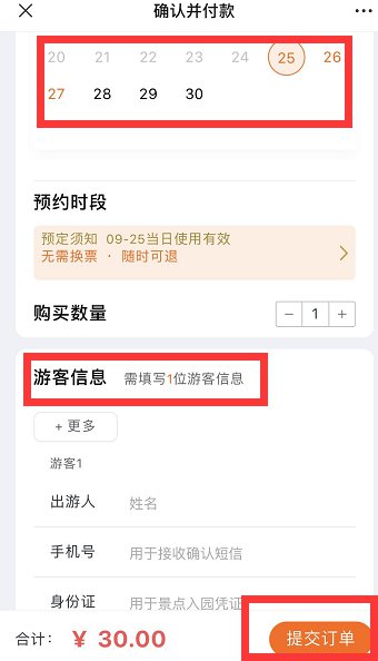 ③ 选择“预约时段”,填写游客相关信息即可。