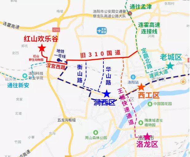 2、310国道—瀍涧大道—祥瑞街—洛阳红山欢乐谷国际旅游度假区