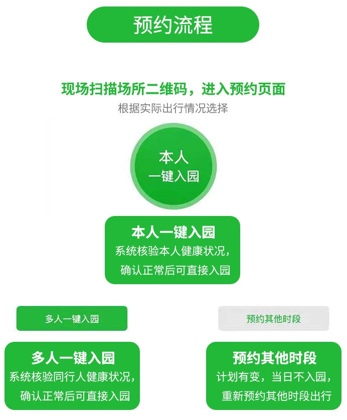 (二)游客到达现场预约,现场扫码核验入园。未提前预约的游客到达景区后,可根据预约量现场选择可入园时段,现场预约,有序扫描景区“文旅预约码”,核验成功后通行入园。