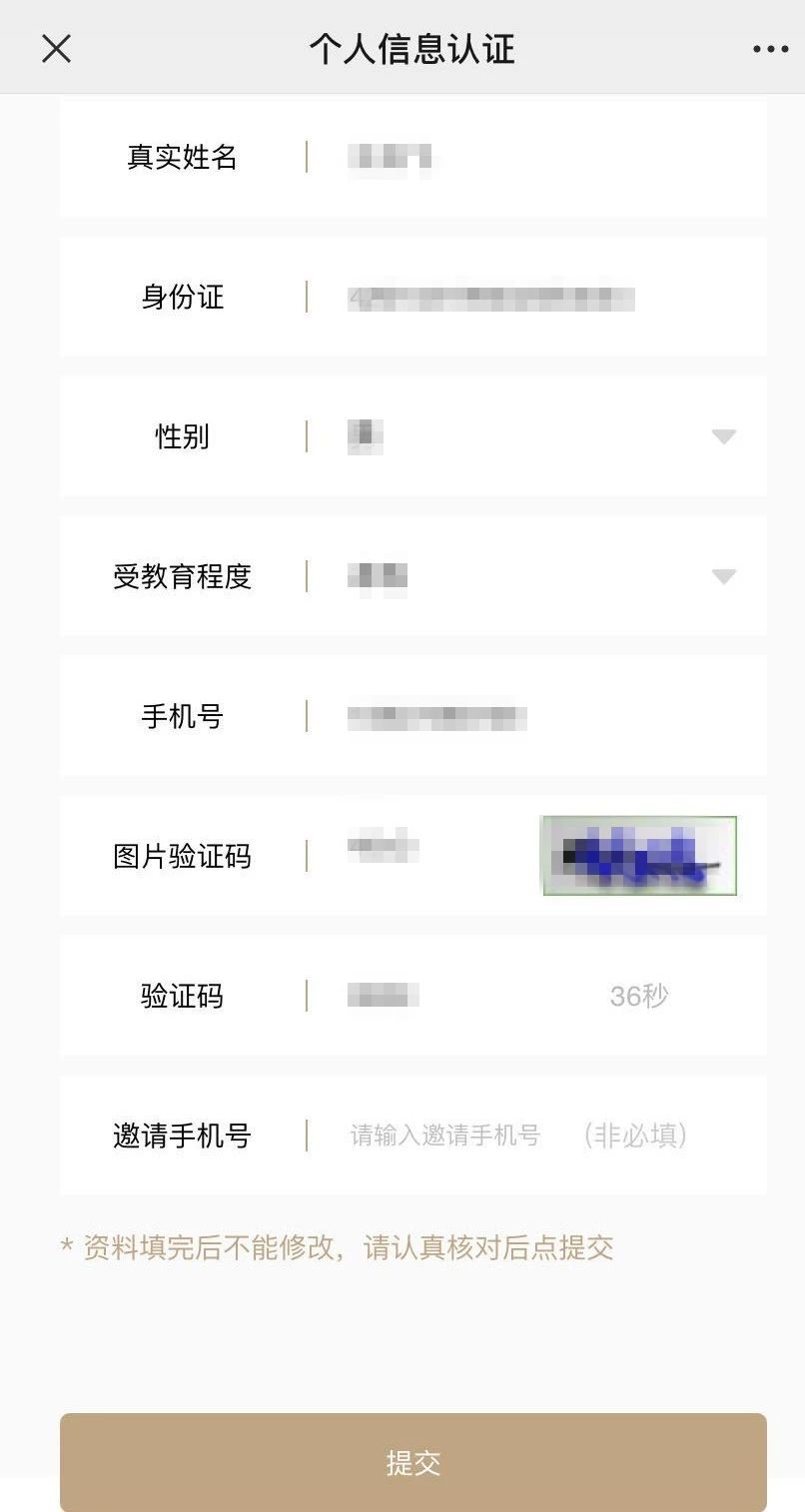 填写个人信息进行实名认证,点击提交,提交后会提示您已完成个人信息认证▼