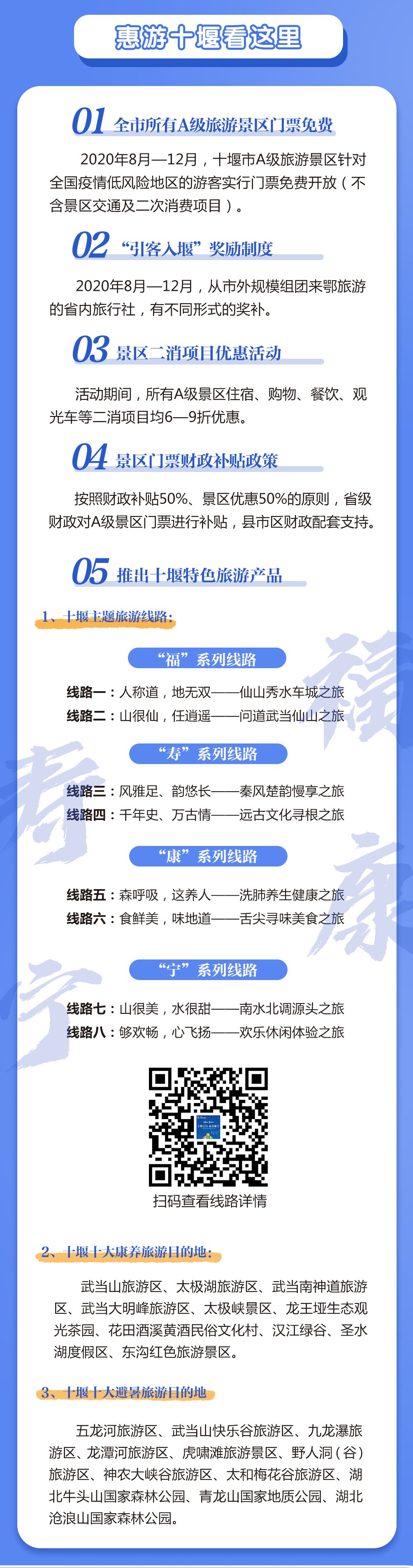 全市旅游景区在做好疫情防控、保障服务质量的前提下,通过政府采购+景区让利对游客免票。游客以在线预约领取景区免费门票,免费门票通过携程旅行网分时段持续派发,每期先到先领,领完即止。游客通过访问“与爱同行 惠游湖北”活动主入口,按目的地选择感兴趣的地方领取旅游惠民消费券。