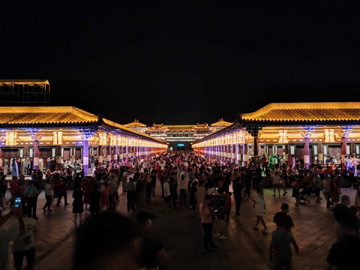 路线二:襄阳唐城中轴线两边分别是东市和西市,其建筑道路布置再现了唐朝时期市井文化的繁华景象,不管是日场还是夜场,这里都有各种有意思的表演,例如舞狮、猴戏等等,这些定能为您的唐城之行增添一抹亮色。