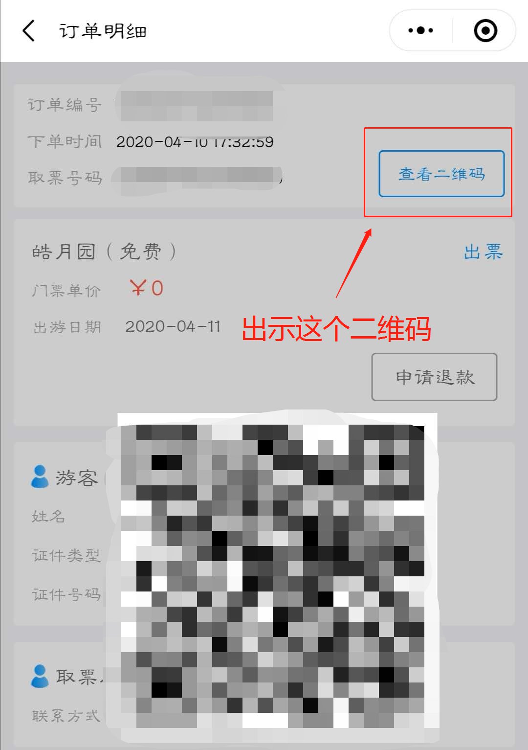 点击左上角“查看二维码”进入景区出示: