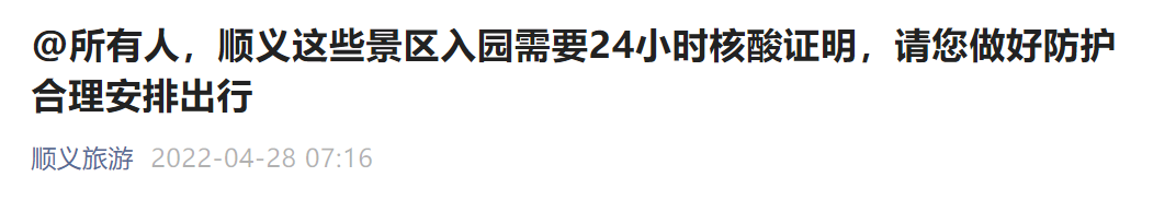 为更好地做好疫情防控工作,保障人民群众身体健康,按照相关部门最新通知要求自2022年4月26日起所有入园游客(包括老人和小孩)在健康宝和行程码均为绿码的基础上,还须持有24小时内核酸或抗原阴性证明,方可入园参观,给您参观带来不便,敬请谅解。咨询电话:010-60461906