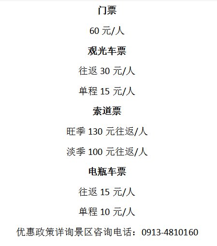 陕西少华山景区门票价格: