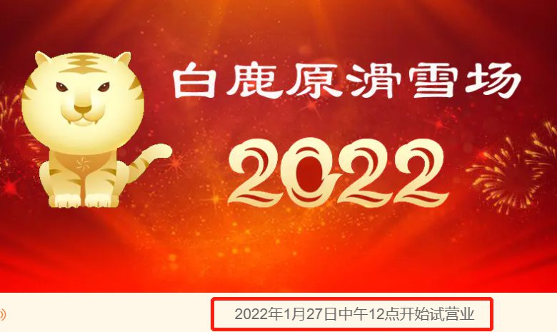 白鹿原滑雪场将于2022年1月27日12时开始试营业!