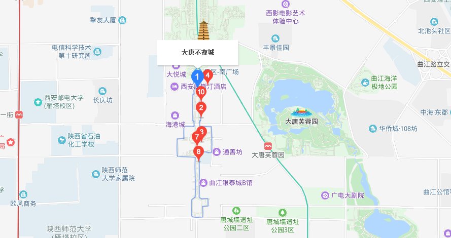 西安大唐不夜城位于西安市雁塔区,由曲江新区进行管理。