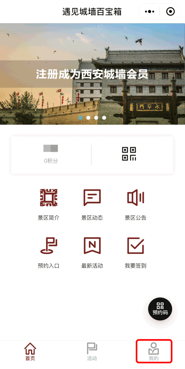 1、进入预约系统,点击图片【注册成为西安城墙会员】或图片下方【成为会员】开始注册,【允许】“遇见城墙百宝箱”申请使用微信基础信息及手机号码。