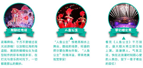 在天气正常的情况下,大连发现王国夜场所有的娱乐设施正常开放,晚道上的巡游表演比白天更加好看。焰火表演是每天晚上20:30,只要天气正常都会有表演。夜场营业时间从16:00-21:00。如果您购内买了白场的门票可以免费游玩夜场。