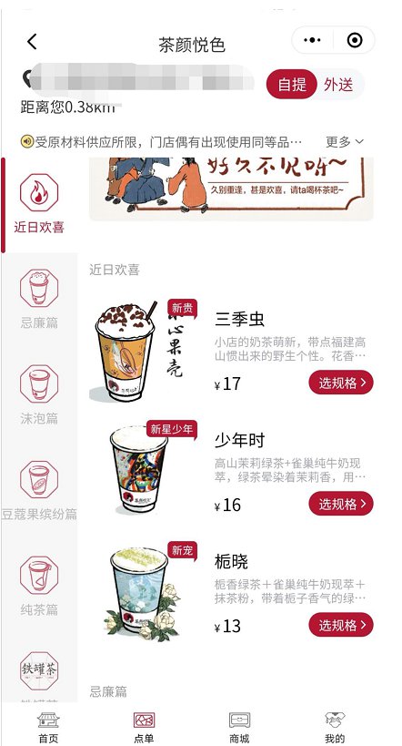 茶颜悦色可以网上点单,然后到店自取即可,再也不用在门店前排长队啦。