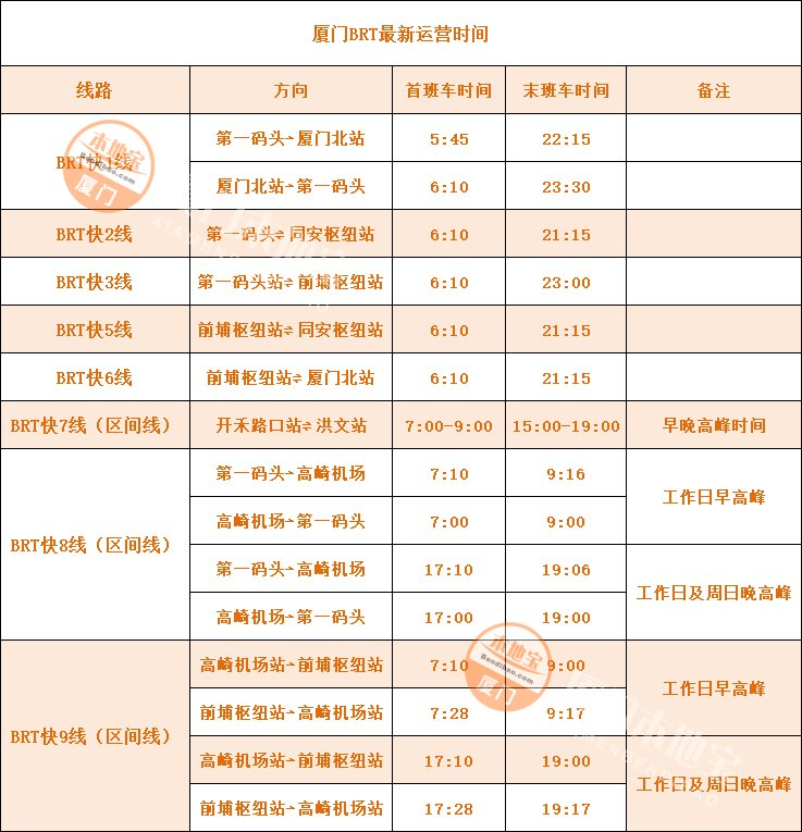 | 厦门BRT最新运营时间 | ||||