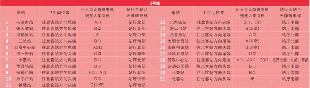 西安地铁2号线卫生间分布位置: