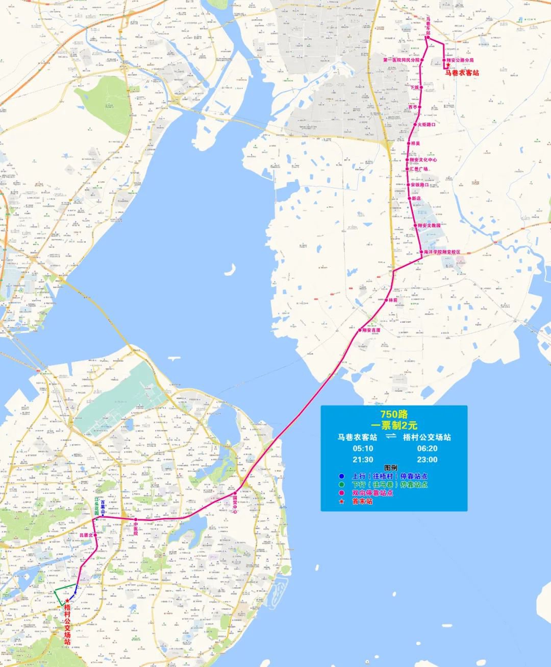 四、750路翔安段改经新店城区、翔安文教园区运行,方便马巷、新店、翔安文教园乘客直达岛内的中医院、吕厝、梧村片区。