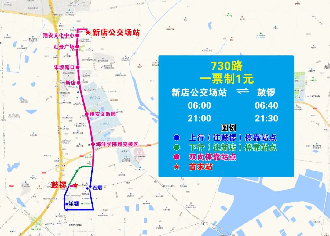 增停:祥吴、翔安文化中心、汇景广场、宋坂路口、新店、翔安文教园、海洋学院翔安校区、林前;