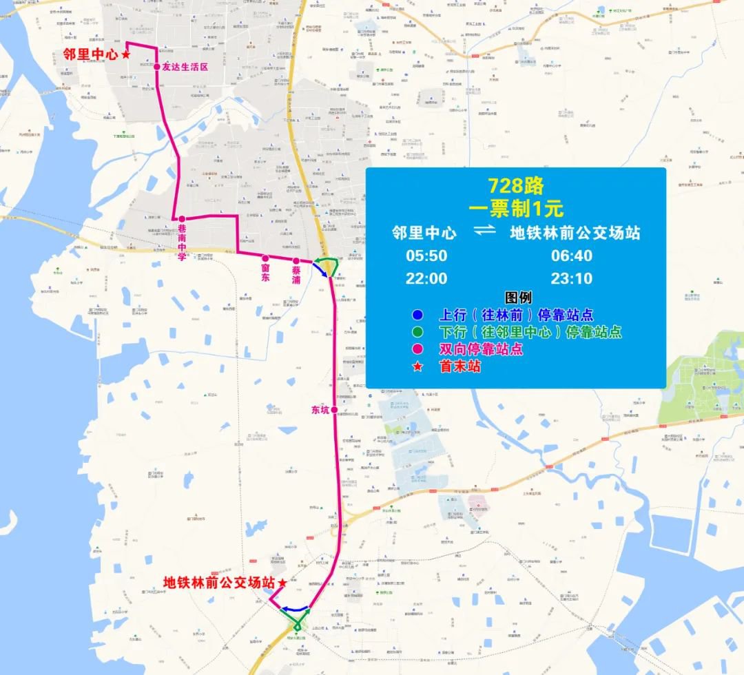 新圩、翔安投资大厦、庵边路口、黎安、数字经济产业园、地铁林前公交场站(东界路新设站点)。