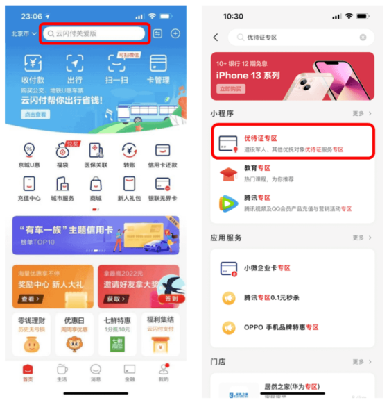 云闪付APP优待证专区: