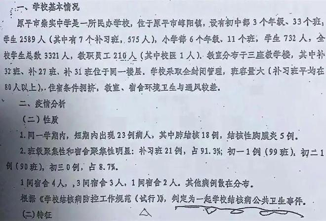 这场肺结核疫情持续了大半年,感染人数不断增加,直到12月才稳定下来。据公开信息,截至7月19日,崇实中学累计发现23例结核病患者;截至9月3日,确诊结核病患者达到63人。12月,可疑临床表现者达到198人,未发现新的肺结核患者,至此疫情才算结束。