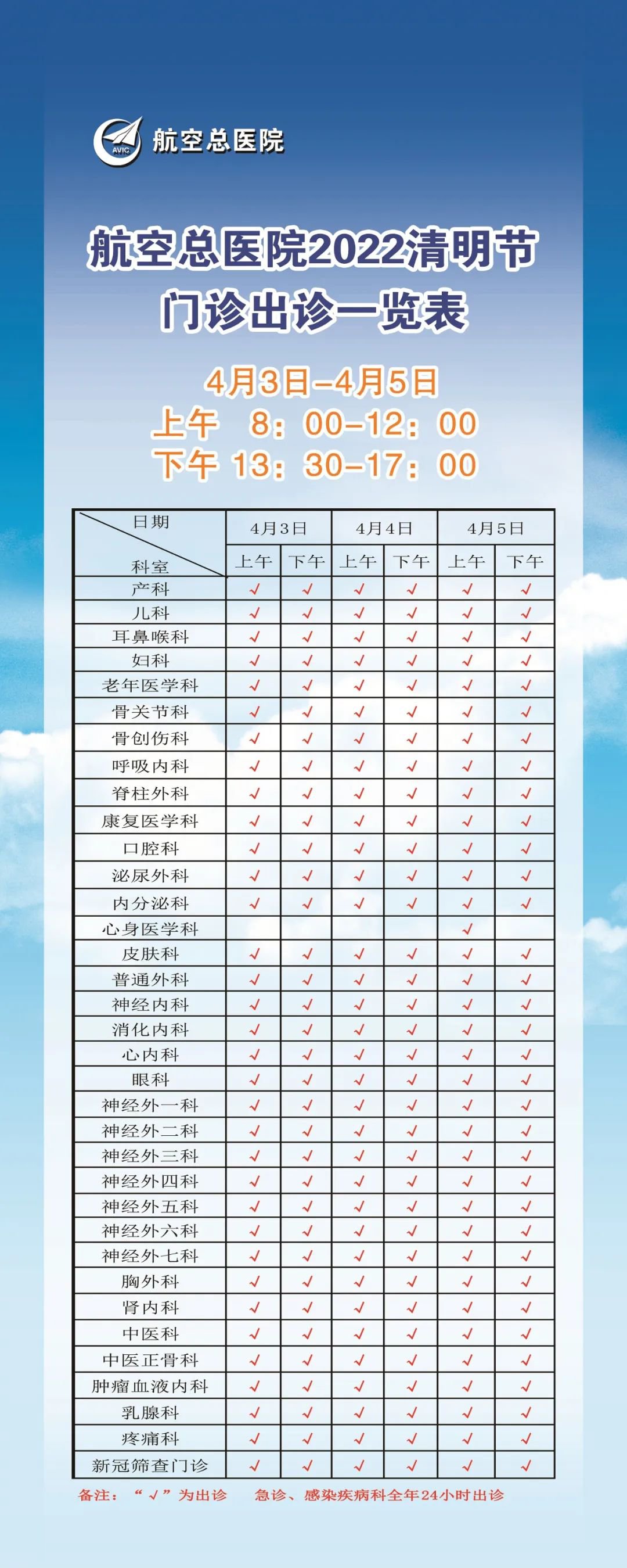 ➤航空总医院2022清明节门诊出诊一览表