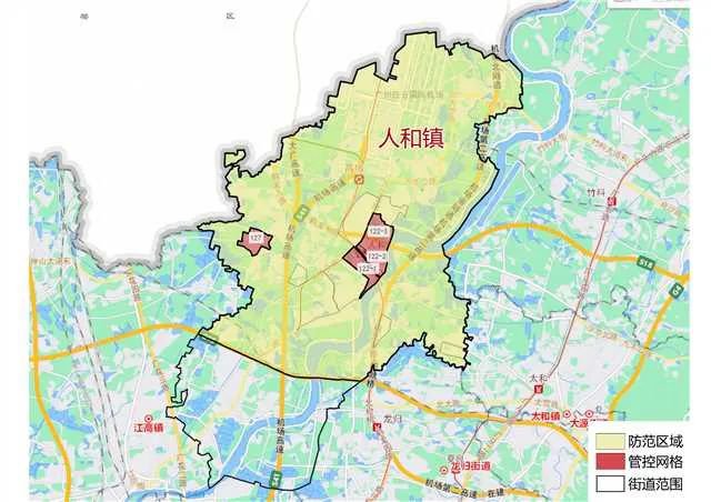 四、人和镇(北二环以北)除第122-1、122-2、122-3、127号网格以外区域解除管控,调整为防范区。