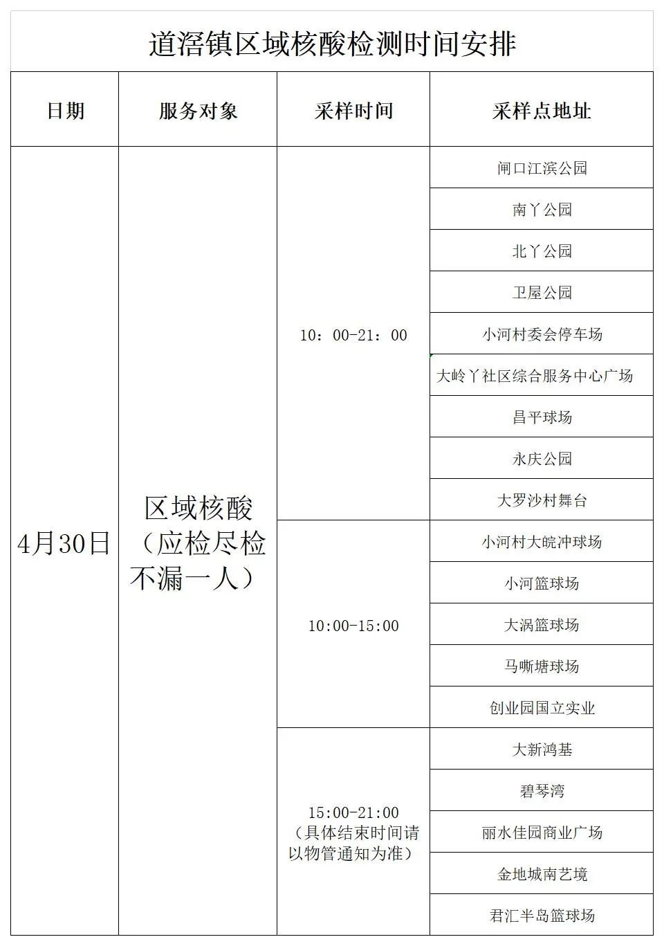 4月30日,道滘镇闸口、南丫、永庆、小河、大岭丫、昌平、大罗沙村及大罗沙创业园进行区域核酸检测。